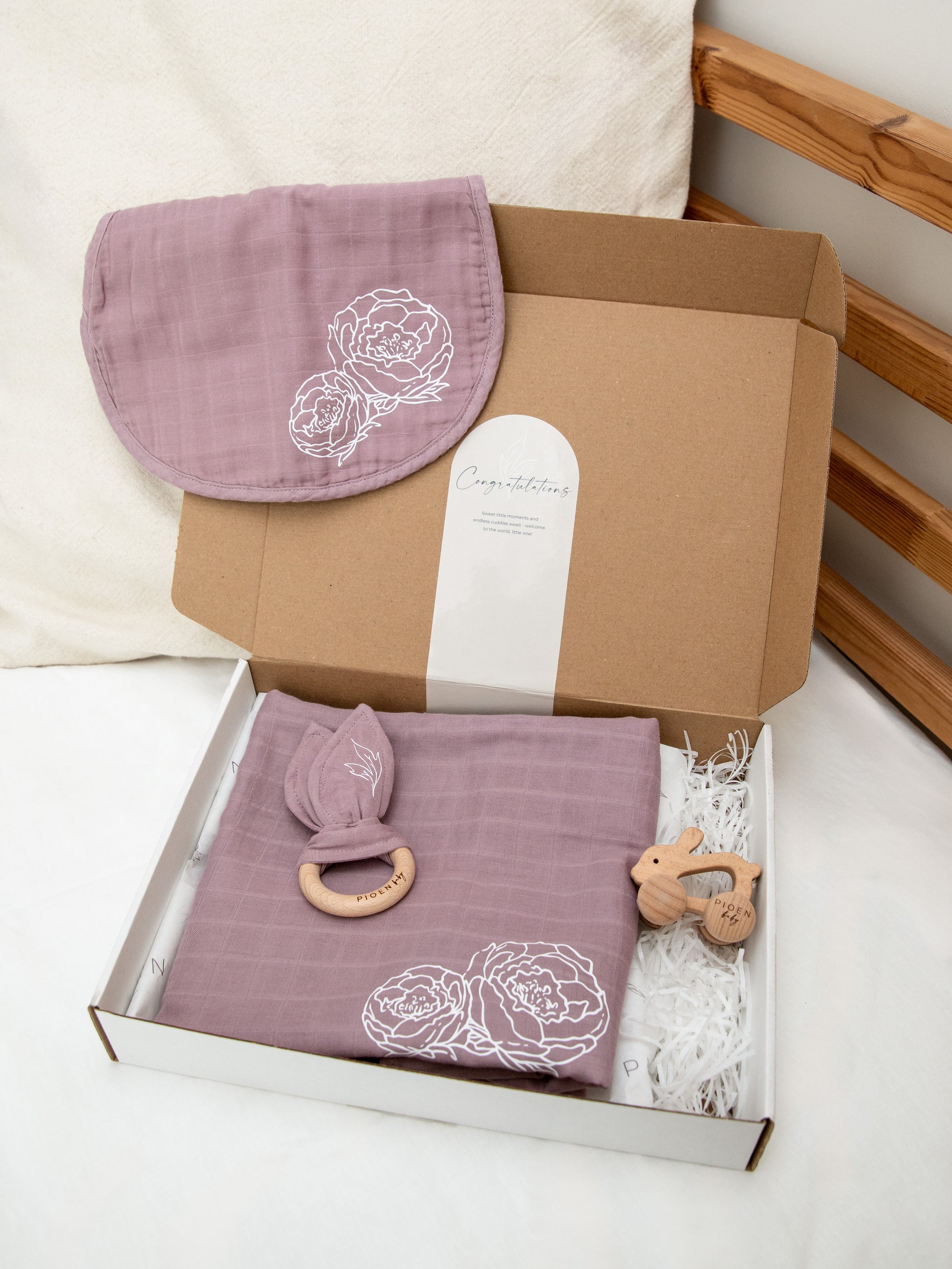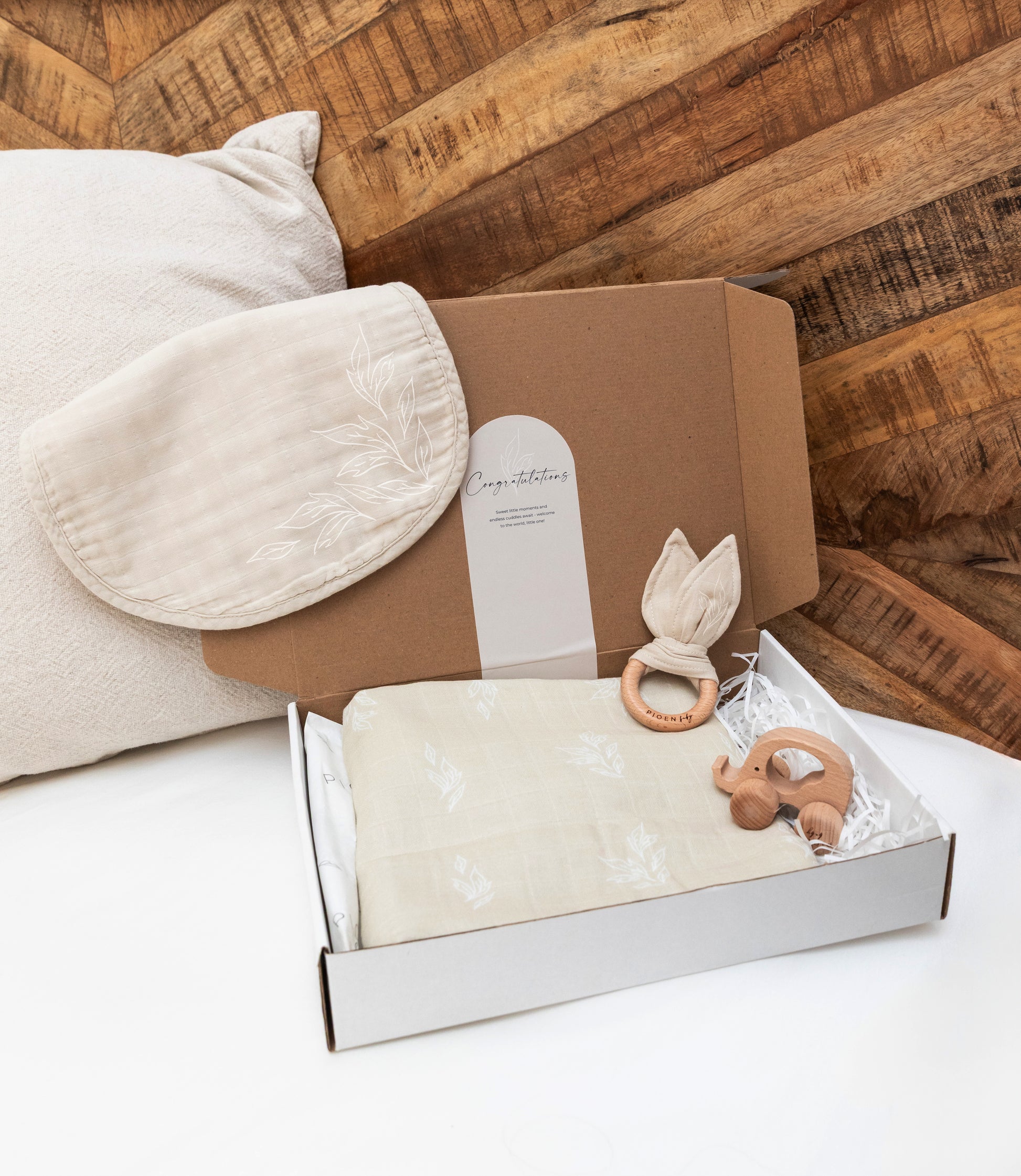• Special Toy: A carefully selected toy that encourages sensory play and baby’s development. This special toy makes the perfect addition to the gift set.