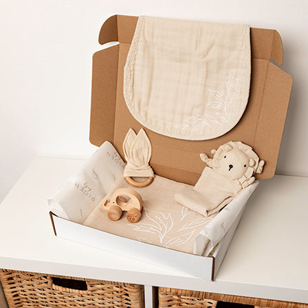- Special Toy: A carefully selected toy that encourages sensory play and baby’s development. This special toy makes the perfect addition to the gift set.